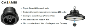 Optioneel kan via de centrale plug-in connector deze reeks uitgerust worden met PIR– of microwave sensoren, of met een Casambi bluetooth node om zo een draadloos netwerk te creëren.