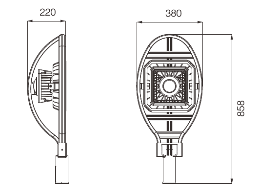 - AXES2-serie: 80W, 100W, 120W, product afmetingen 858*380*220 mm