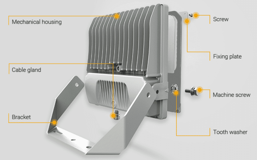 Specifiek heeft dit armatuur een dubbele oppervlakte behandelding met electroforese en een speciale anti-corrosie poeder coating, en zijn alle bouten en moeren van zowel de beugel als het armatuur behandeld met GEOMET® technologie, dit is het gepatenteerde chroomvrije alternatief van DACROMET® en is een niet-elektrolytisch watergedragen zinc flake coating systeem, waarmee op milieuvriendelijke wijze een extreem hoge corrosiebescherming bij dunne laagdiktes wordt gerealiseerd. De lens (beschikbaar in 4 stralingshoeken) is afgeschermd door een gehard glas om zo bedamping en vergeling te elimineren, mede dankzij het ingebouwde verluchtingsventiel.