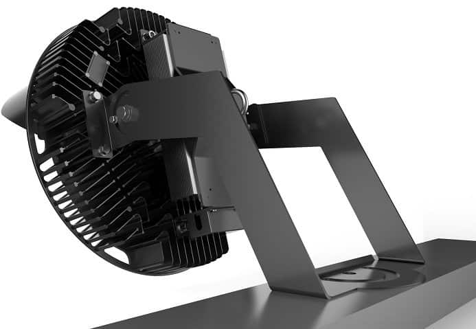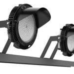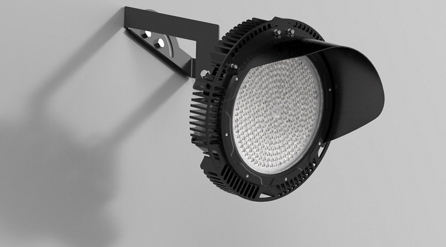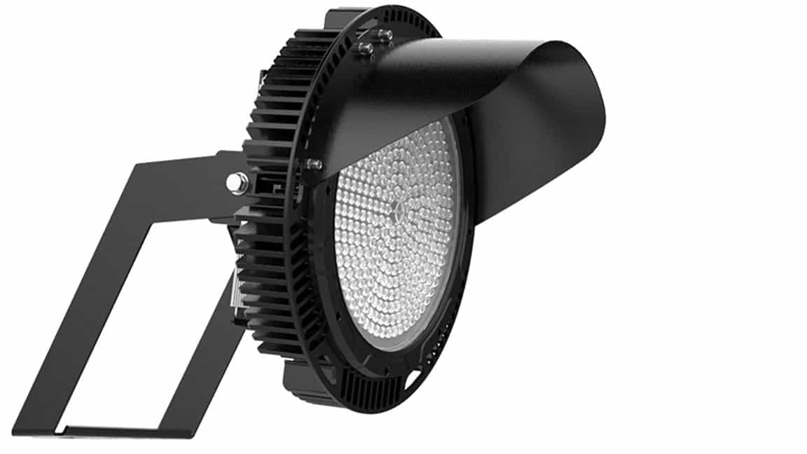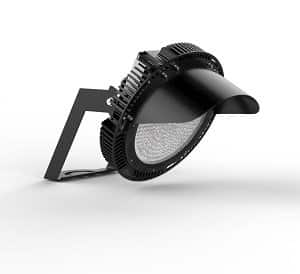 IP65 High power LED floodlight, beschikbaar in 3 verschillende stralingshoeken. Seoul SMD LED’s en Meanwell driver. Behuizing zwart gegoten aluminium met roestvrije moeren. Ingebouwde overspanningsbeveiliging (2KV), hoog efficiënt: 150lm/W in 5000K/CRI>70 versie. Afschermkap bovenaan. Toepassingen: sportvelden, hoge masten, hoge luminantie buitenverlichting.