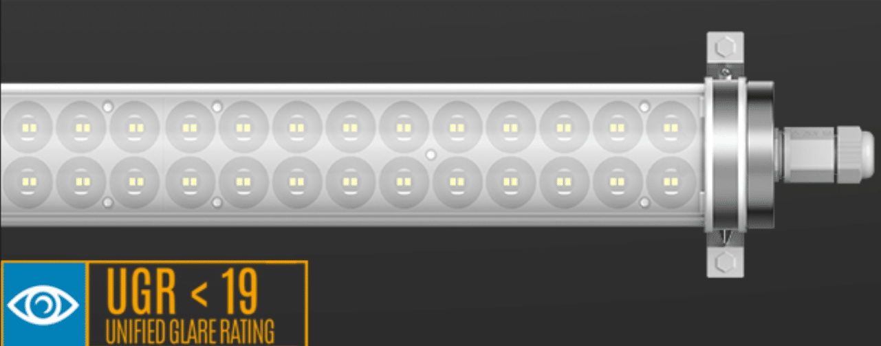 - Clear PMMA/PC: IP66, IK06/10 – low glare honeycomb lens 60° of 90° – toepassingen: low UGR (<19) omgevingen