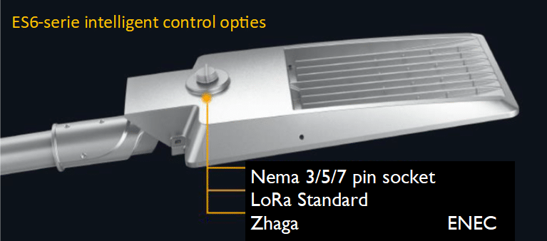 Zo is de straatverlichting verkrijgbaar met Zhaga receptacles en NEMA sockets (3/5 of 7-pin).