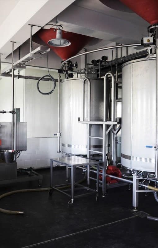Nieuwbouw mosterd- en pickles fabriek Camps Oudenaarde, uitgewerkt met EHF-serie speciale pendelarmaturen voedingsindustrie (HACCP)