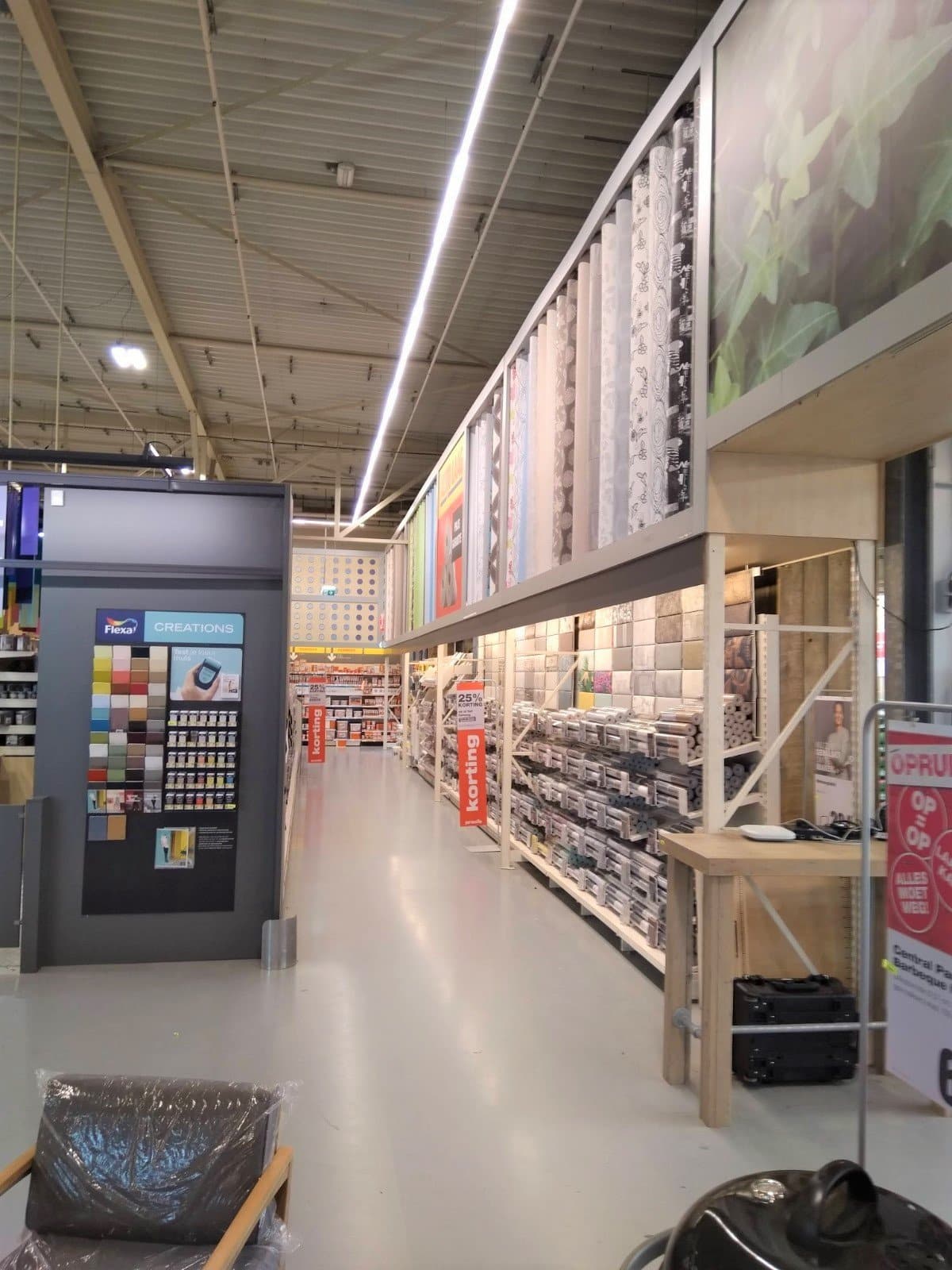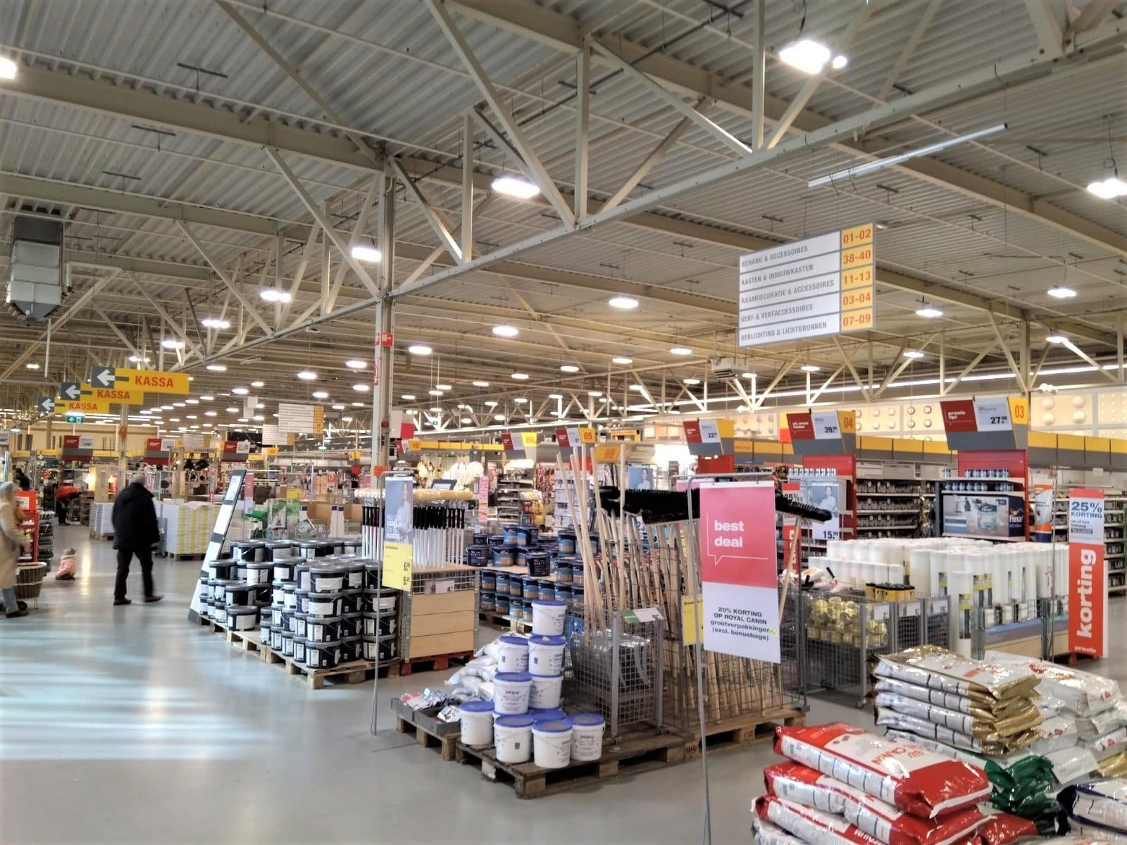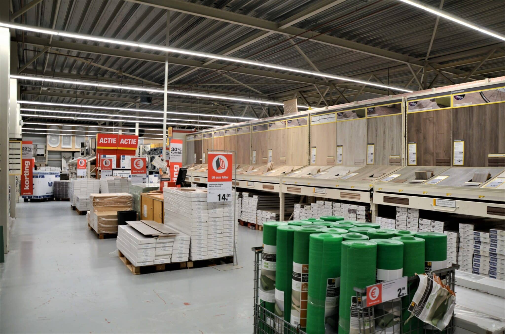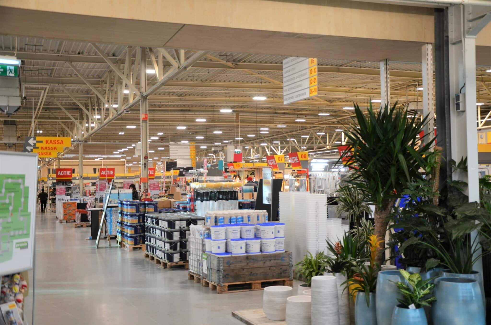 Totale relighting (LAAS) van Praxis winkels in Nederland, toegepaste armatuur-series hoofdzakelijk EM5-serie in combinatie met ELL1-serie en EBR-serie.